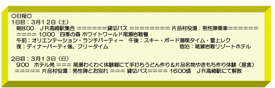 > 「群馬県 尾瀬の郷」SKI&SNOWBORD de 婚活 in 片品