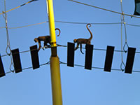 モンキースカイウェイでは、頭の上に架けられた吊り橋を猿たちがひょいひょい渡っていく姿を目近に見ることができ迫力十分だ。