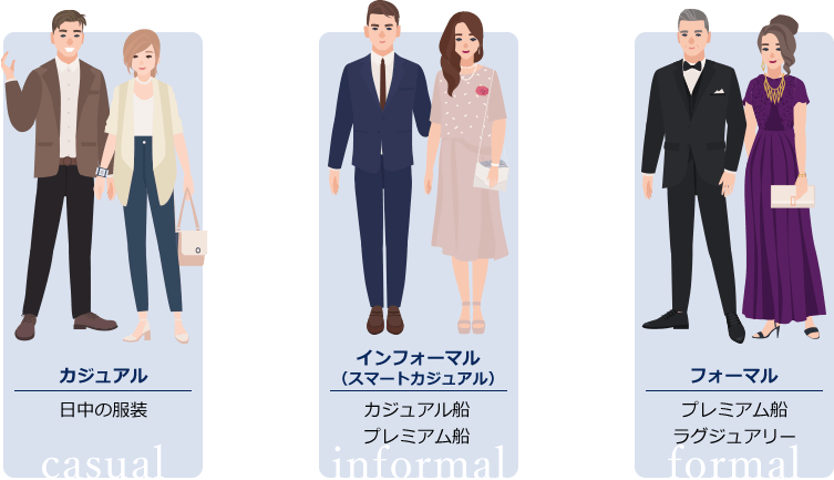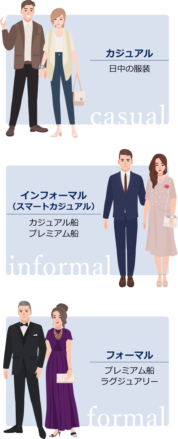 普段から個人旅行を楽しまれいる方は、外国船がおすすめです。 - ドレスコードで気をつけるポイントはありますか?