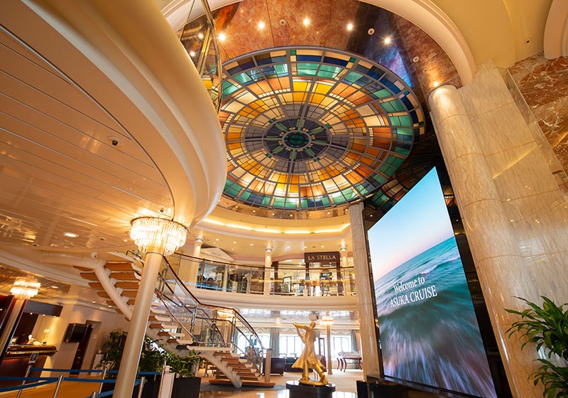 全室バスタブ付き、かつ海側のゆったりとした客室、展望大浴場「グランドスパ」等の充実した船内設備に、夜毎上演させるオリジナルのショーやコンサート等エンターテイメントも満載です。乗客1人当たりのスペースと乗組員比率はトップレベル、日本船ならではのおもてなしでお迎えします。