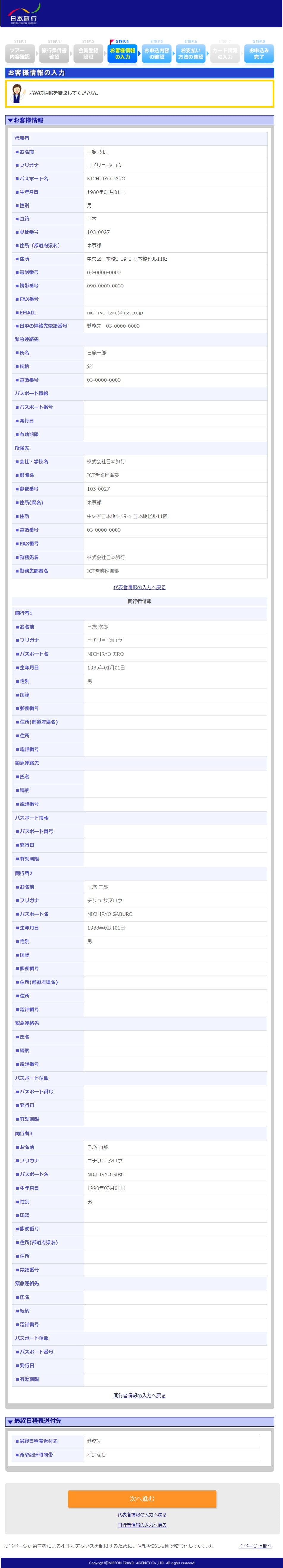 日本旅行 トップ > ヘルプ > ベストツアー/webコレクション(海外パッケージツアー) > お申込みの手順 7.お客様情報の入力確認