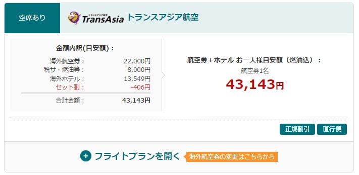 「フライトプランを開く」をクリックすると、提供しているプランが一覧表示されます。