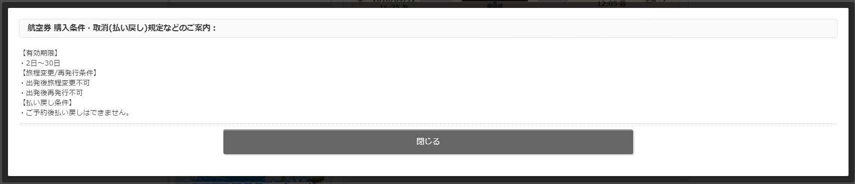 リンクをクリックすると、航空券 購入条件・取消(払い戻し)規定などのご案内を確認いただけます。