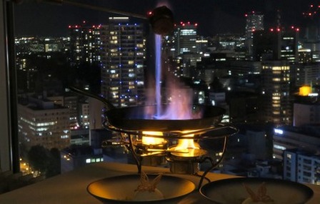 夜景をイメージした食前酒のカクテル、料理の盛り付けなどコース料理に夜景を取り入れた期間限定メニューです。デザートはお客さまの前で仕上げる炎のデザートをご用意いたします。