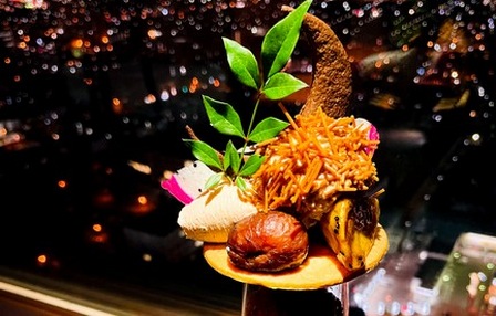 地上115mから望む新札幌の夜景をイメージしたパフェ。グラスの中は、新札幌特有の温もりのあるオレンジ色の街明かりと空のコントラストをイメージし、カボチャのパンナコッタとあんこのクリーム、ショコラジェノワーズが三層になっています。レストランの大きな窓から見える夜景とともに、美しく美味しい夜景スイーツをお楽しみください。