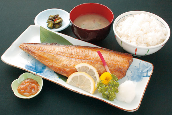 (しまほっけ焼半身+ご飯、味噌汁、小鉢)