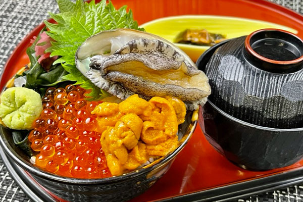(鮭いくら、無添加うに、活あわび)