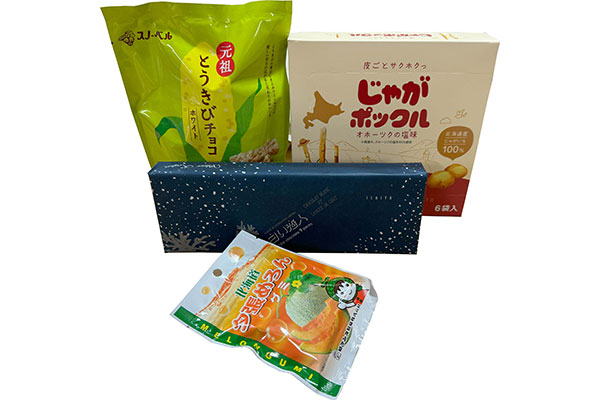 【商品内容】白い恋人9枚入、じゃがポックル6袋入、とうきびチョコホワイト10本入、夕張メロングミ50g入