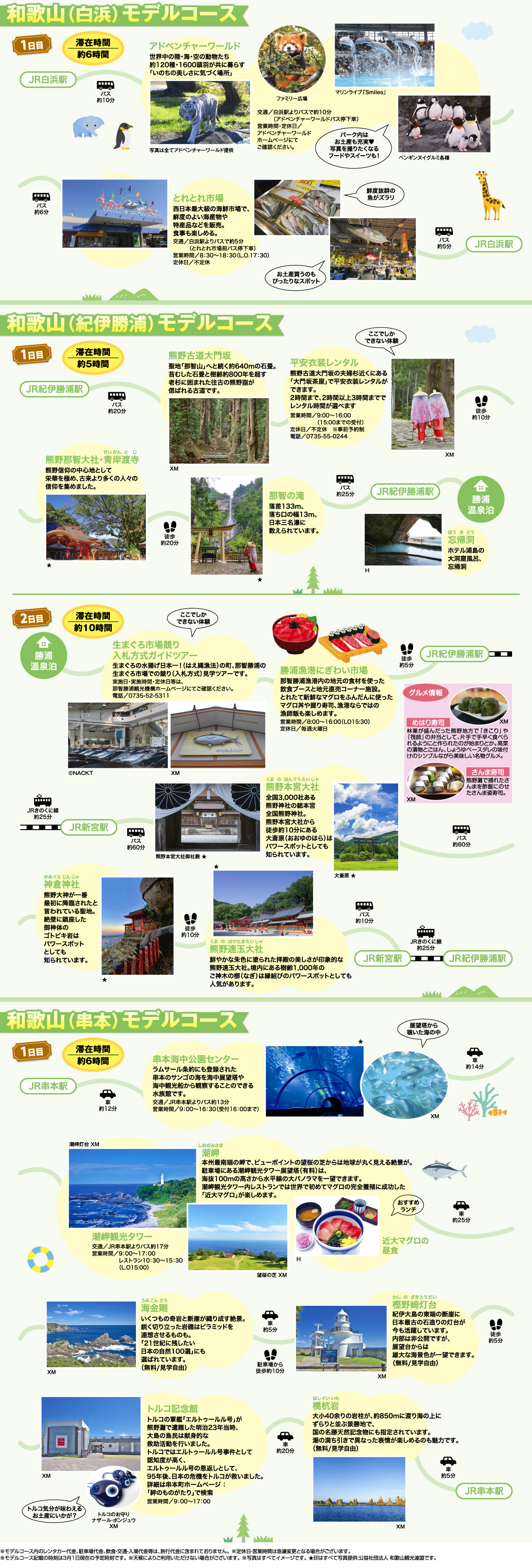JR串本駅を出発し、南紀熊野ジオパークセンターや串本町内の観光地を巡ります。鉄道で串本町に来訪する方には大変便利です。