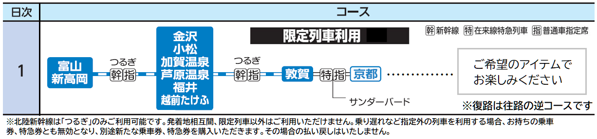 本プランは、北陸発日帰りプランのため、ご利用いただけません。