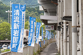 さて、"とことこトレイン"を楽しんだら、帰りにJR岩徳線と合流する一つ手前の駅で下車してみましょう。「清流新岩国」駅と名乗っていますが、今年(2013年)3月15日までは「御庄」駅でした。改称後の現駅名から、ピンときた方もおいででしょう。新岩国駅はJRの山陽新幹線にある駅です。その前についている「清流」は錦川鉄道の路線名「錦川清流線」に由来します。つまり、「新幹線新岩国駅に乗換ができる錦川鉄道の駅ですよ」という駅名なのです。