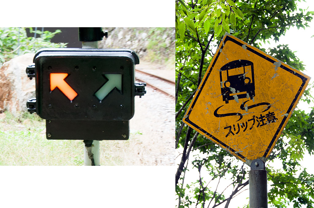 立山カルデラは、江戸時代後期(1858年)に起きた"安政の大地震"で大きく崩れたのをはじめ、その後も大きく崩れては常願寺川沿いの富山平野に大きな被害をもたらすことから、砂防工事が必須となっています。このような悪条件のところにある専用線ですので、急勾配・急カーブはあたりまえ。全線17.7kmの間に、なんと38カ所ものスイッチバックがあることで知られています。