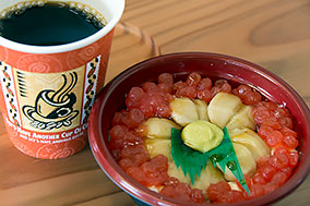 とはいえ、ここで駅弁を売ってもメインディッシュを控えている乗客に売れるはずもありません。カニちらしや昔懐かしい豆パン、道内で端午の節句に食べられるというべこ餅、醤油だんごにチーズケーキラスク、ホッキしゅうまい等々、地元で売られている食材が、小分けして各200-300円の手ごろな価格で買えるようになっています。