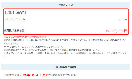 - お申込み完了後、マイページにて旅行内容(行程)の確認をお願いします。