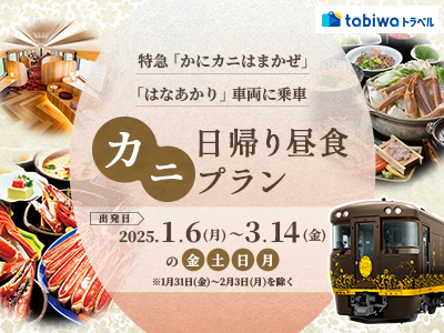 ※1月31日(金)~2月3日(月)出発を除く - 旅行代金: 37,900円おとなお1人様/<竹野>カニ昼食プラン/大阪発着/往復「はなあかり」車両スーペリアグリーン(2名定員)利用の場合