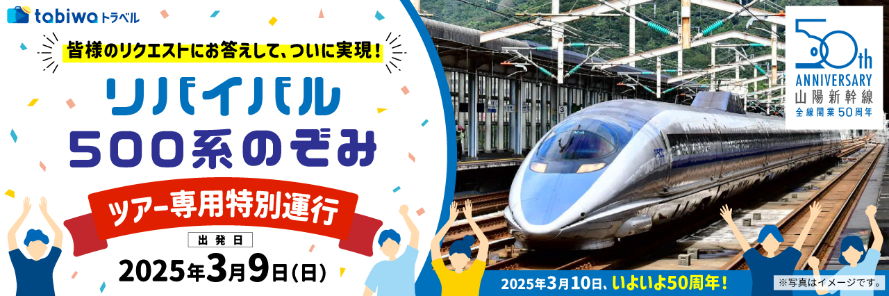 新神戸(13:04頃)+++〈500系「のぞみ」/普通車指定席又はグリーン車指定席〉+++博多(15:21頃)・・・到着後解散フリータイム