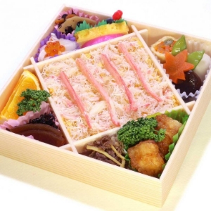 創業明治43年。鳥取の老舗駅弁屋「アベ鳥取堂」の人気商品「元祖 かに寿し」に、山の幸から海の幸までふんだんにおかずを詰め込んだお弁当です。