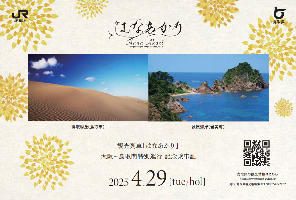 鳥取県より大阪~鳥取間の特別運行を記念した記念乗車証をご用意。