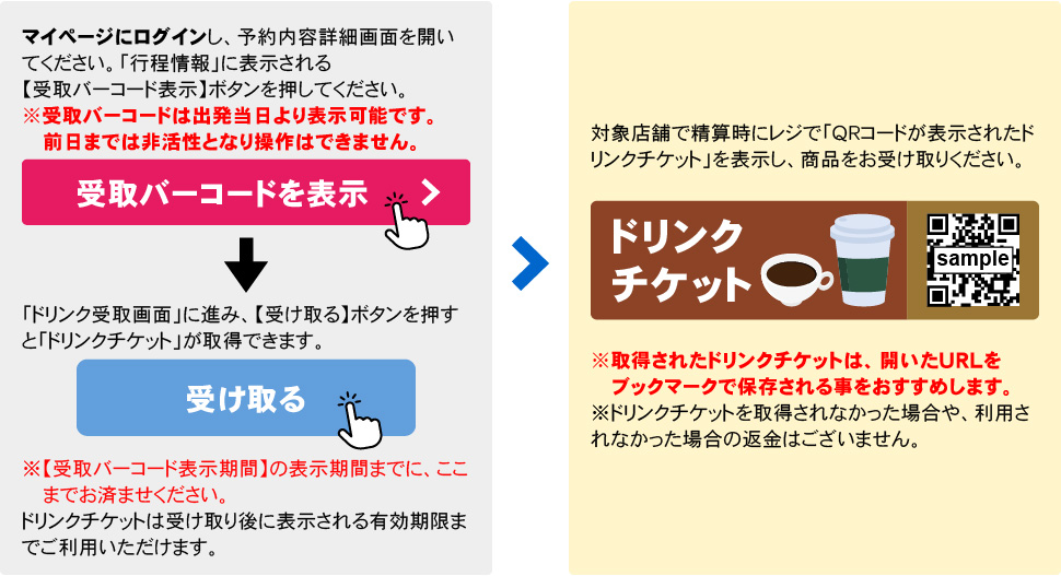 ドリンクチケットの受け取り方法