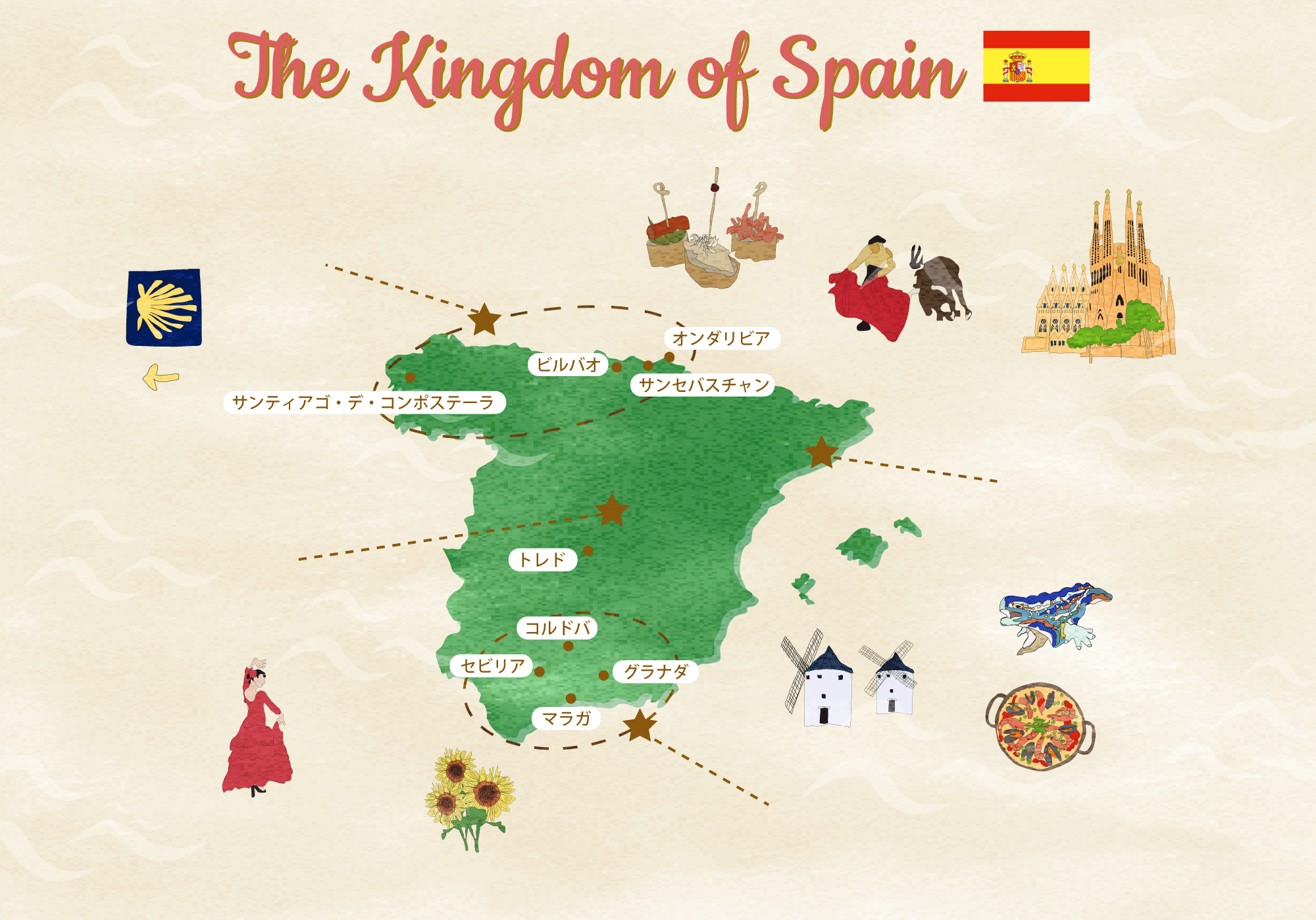 スペイン北東部、フランスの国境近くのバスク地方の小さな町にミシュランの星付きレストランが点在する食通が注目する町があります。それがサンセバスチャンです。「ビスケー湾の真珠」と呼ばる高級リゾート地で旧市街には洗練されたレストランやバルがひしめきあっています。北西部には巡礼路の最終地点、聖地サンティアゴ・デ・コンポステーラがあり、巡礼者はフランスからピレネー山脈を越え、最終地点を目指します。