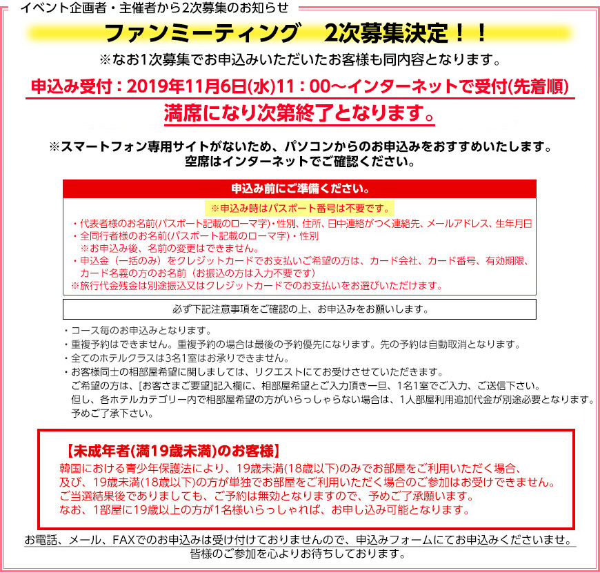 ※ファンミーティング・本旅行に関して、個人的要望はお受けできません。