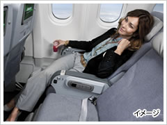 A330は合計21席。2-3-2配列になっています。B777は合計24席。2-4-2の配列です。どちらの機材も、落ち着いた、静かな機内になっております。リクライニングは120度、足元のスペースはクラシカクラス(エコノミークラス)と比較して20%も広くなりました。