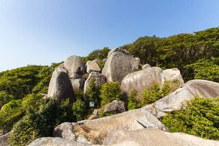 3,000〜8,000年前の砂岩からなる浸食台地で怪岩奇岩の景勝地として有名です。昭和45年に日本ではじめて海中公園に指定されています。
