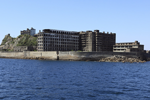 長崎港の沖合に浮かぶ炭坑の島。最盛期には鉄筋コンクリート造りの高層アパートが林立。島の外観が軍艦に似ていることから「軍艦島」と呼ばれました。1974(昭和49)年に閉山し、現在は無人島。2009(平成21)年から観光用ルートの上陸がはじまっています。