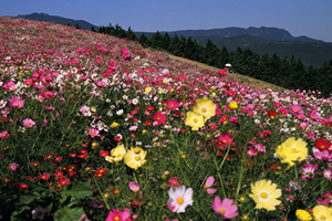 標高1,057mの五家原岳(多良山系)の中腹に位置する高原です。有明海、諫早平野、雲仙普賢岳を一望。春には約10万本の菜の花、秋には約20万本のコスモスが咲き誇ります。大型天体望遠鏡での観測を体験できる「コスモス花宇宙館」も隣接しています。
