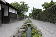 島原城下に残る下級武士の武家屋敷。藁葺き屋根の3軒が現存し、往時の雰囲気を伝えています。街路の中央には豊かな湧水を引いた水路が通り、生活用水として守られてきました。