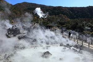 雲仙温泉を代表する観光名所。大叫喚地獄やお糸地獄など30余りの地獄からなります。現在最も活動が激しいのは大叫喚地獄です。この地帯は、徐々に東へ移動しています。
