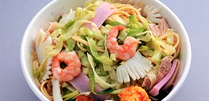 豚骨・鶏ガラをベースにしたスープに、コシのある太麺を使用します。具材は、肉や魚介類、野菜類をふんだんに入れるのでボリュームがあって栄養満点!