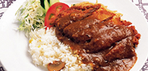 トンカツ、ピラフ、スパゲティ、場所によってはカレーも追加。人気の洋食メニューを1つのお皿に盛り付けたワンプレート料理です。