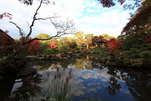 奈良市内にて知る人ぞ知るスポットとして人気の庭園で国の名勝に指定されています。ゆっくりと庭を歩きながら風景を楽しむ池泉回遊式庭園は、明治時代の実業家が築いた名庭で、四季折々の風情を感じることができます。