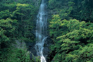 十津川の深い緑に覆われた山中、国道より21世紀の森に向かう途中にある名瀑です。約46mの落差を誇る滝は別名不動滝と呼ばれ、静かで荘厳な雰囲気を感じさせます。春の新緑、秋の紅葉に彩られた滝も必見です。
