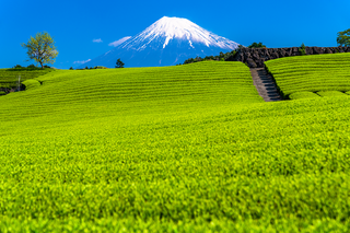 日本の観光百選・国の名勝・県自然公園に指定された丘陵地。一面の茶畑越しに望む富士山は、これぞ「静岡の風景」と呼ぶにふさわしい景観です。