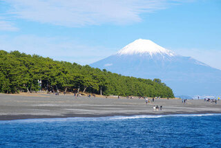 約7kmの海岸線に5万本以上の松が茂り、三大松原の1つに数えられてます。波打ち際から望む富士山は圧巻で、新日本三景の名勝地に選ばれています。