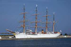 海の貴婦人と呼ばれる海王丸。この純白の帆船を中心に広がる海王丸パークは、人々が集い、学び、憩う、素敵なベイエリアです。29枚の帆をすべて広げる総帆展帆(そうはんてんぱん)は見ごたえたっぷりです。