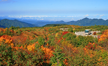 高低差による紅葉の期間の長さが特徴。彩り豊かな色彩を従えて約1ヶ月半に及びます。