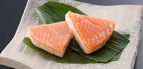 若笹のさわやかな香りと満開のサクラを思わせる薄紅色のマスの身が印象的です。200年以上にわたり受け継がれた秘伝の味は店ごとにこだわりがあります。