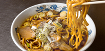 まさに真っ黒いスープが特徴の「富山ブラック」。だしの旨味がきいた濃い醤油スープは一度食べるとまた食べたくなるから不思議。