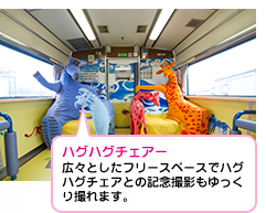ホッキョクグマやライオンさんが椅子になった「ハグハグチェアー」や、おやつを食べたり、絵本を読んだりする「モグモグコーナー」など楽しさ満載!