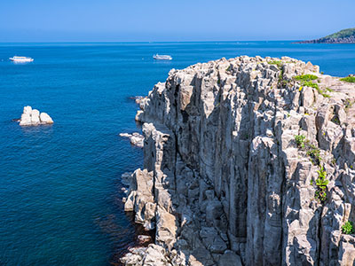 おすすめポイント坂井市にある「東尋坊」は、約1kmにおよぶ巨大な柱状の岩(柱状節理)で、絶壁に日本海の荒波が打ち寄せる豪快な景色が見られます。その希少性から「国の天然記念物」・「日本の地質百選」に選ばれています。崖っぷちから海を眺めるだけでなく、天気のよい日は遊覧船に乗れば間近で見ることができますし、周辺には土産物店や魚介を味わえるお食事処もあり、楽しみ方はさまざま。夕陽の名所でもありますので、訪れる時間によって景色が変わるのも楽しいスポットです。東尋坊へのアクセスJR又はハピラインふくい福井駅より車で約45分