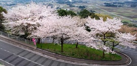 - 標高306mの愛宕山は、春になると中腹から山頂にかけて見事な桜が咲き誇り、山が ピンク色に染まっていきます。