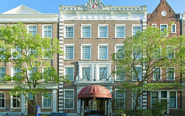 直 営ホテルアムステルダム ハウステンボス- ハウステンボスの中心に建つテーマパーク内唯一のホテル。花のあふれる華やかなお出迎え。中庭にある パティオを四季の花々で飾ります。