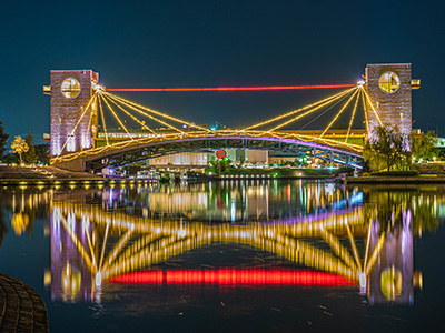 「富山県 富岩運河環水公園 」は、とやま都市MIRAI計画のシンボルゾーンとして水辺空間の豊かさを大切にしながら整備される面積9.8haの親水文化公園です。四季に合わせたイメージカラーで幻想的なイルミネーションをお楽しみいただけます。
