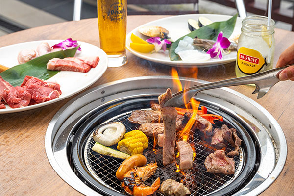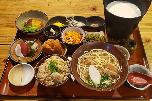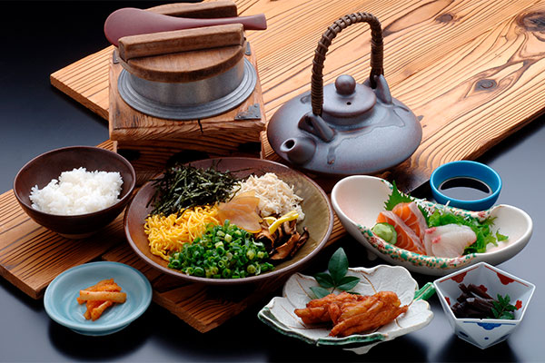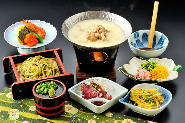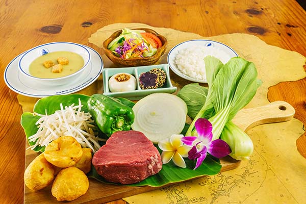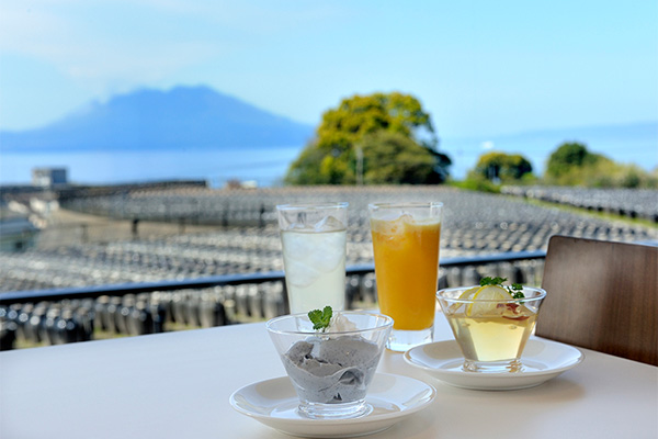 江戸時代から続く伝統製法で造られた鹿児島の壺造り黒酢「坂元のくろず」をふんだんに使用した料理をお楽しみいただけます。目の前に広がる壺畑や桜島を眺めながらのお食事をゆっくりご堪能ください。