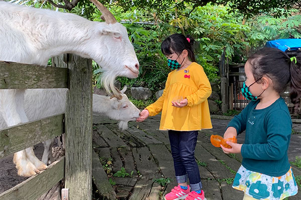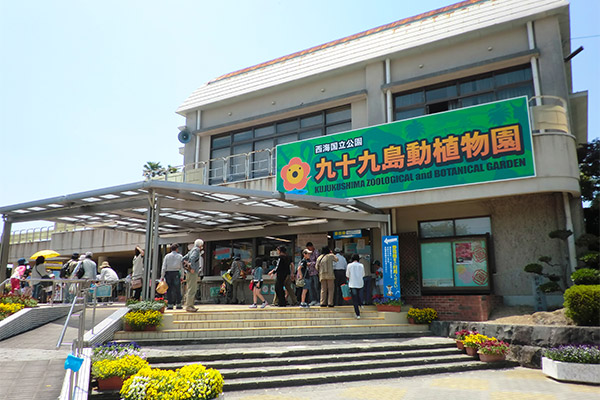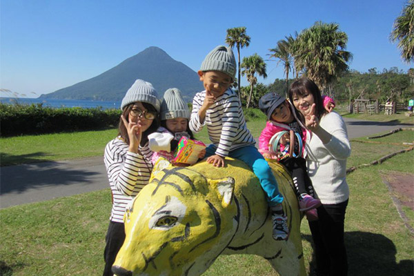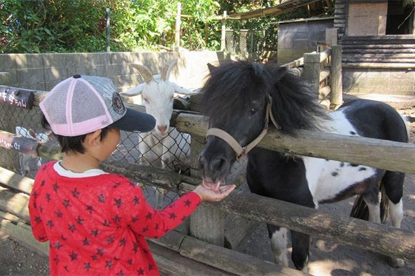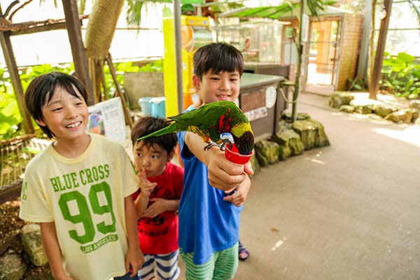 薩摩富士と呼ばれる「開聞岳」と東シナ海をバックに亜熱帯植物が生い茂る園内でコンゴウインコや白鳥、ヘビ、モルモット、ヤギなどいろんな動物たちとふれあうことができます。動物ショーも人気です。