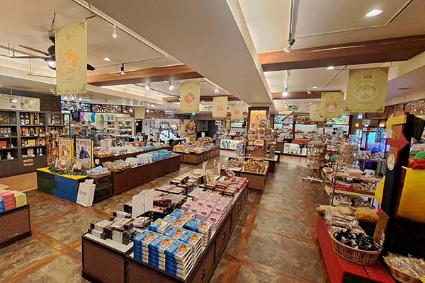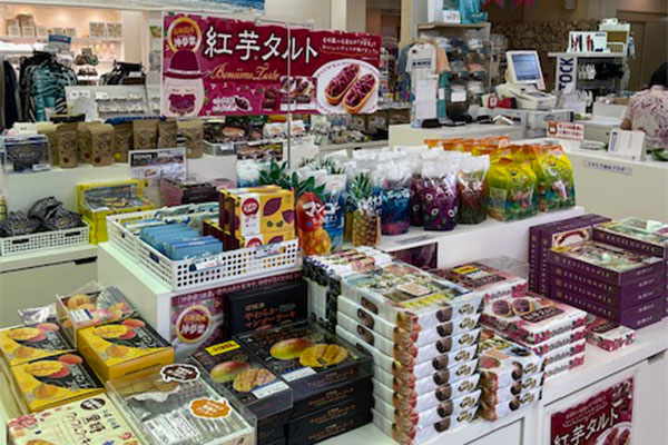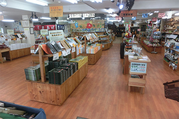 屋久島最大のお土産市場。「屋久島のお菓子」屋久島の恵みを美味しいお菓子につくり上げました。お菓子は全て当店製造直売です。「農産物・海産物」旬な特産品を取り揃えています。「屋久杉製品」お箸からサイドボードまで取り揃えています。