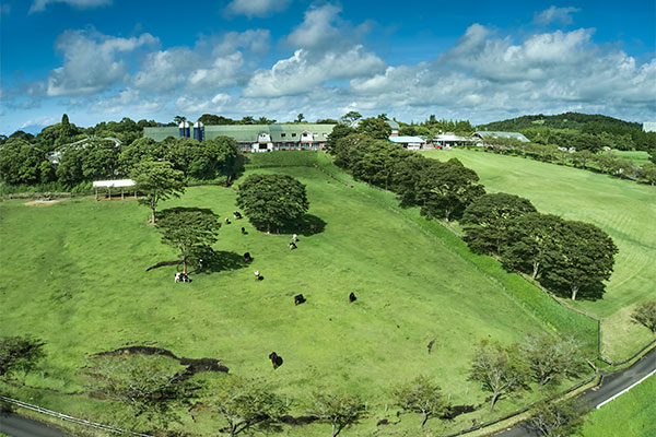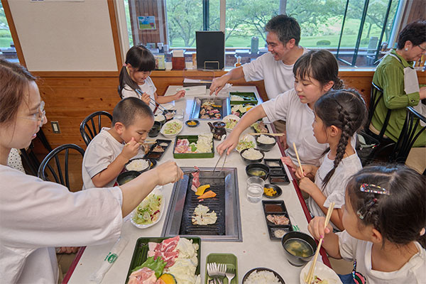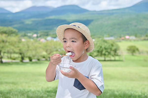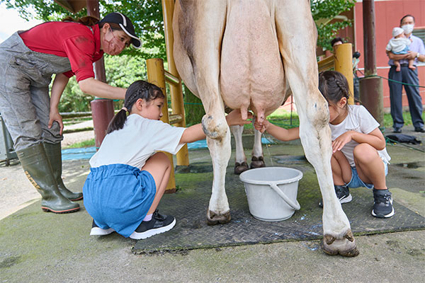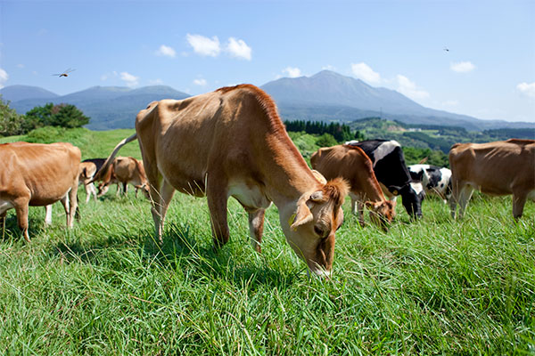 熊本平野が一望できる草原にある体験型の牧場。牛の乳搾りや乗馬、ヤギ等とふれあいができ、自家製ミルクやチーズを使用したバイキングレストラン、自家製品を使用したお菓子などが買える物産館あり。